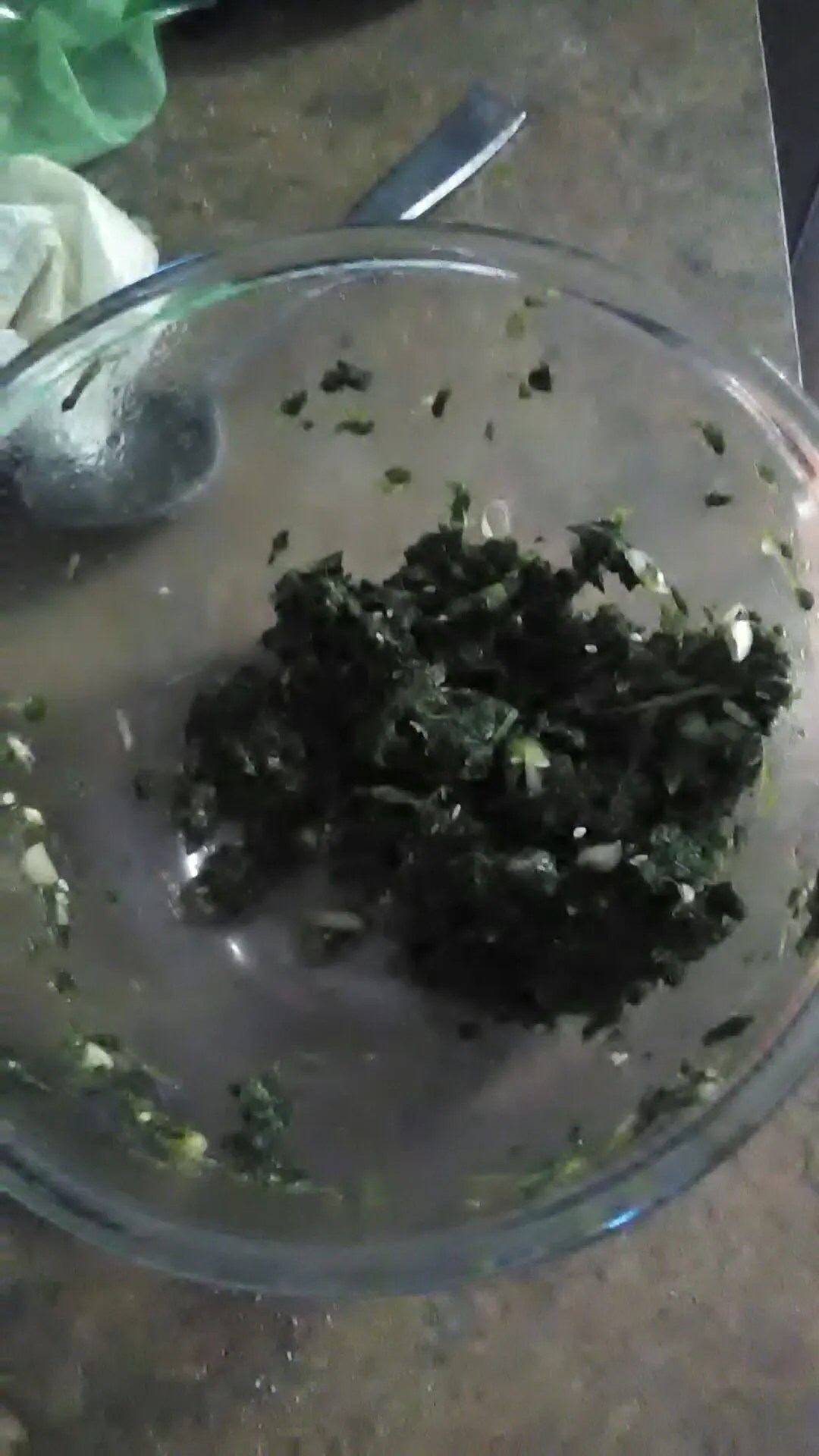 Spinach with green onions, garlic, and sesame seeds.