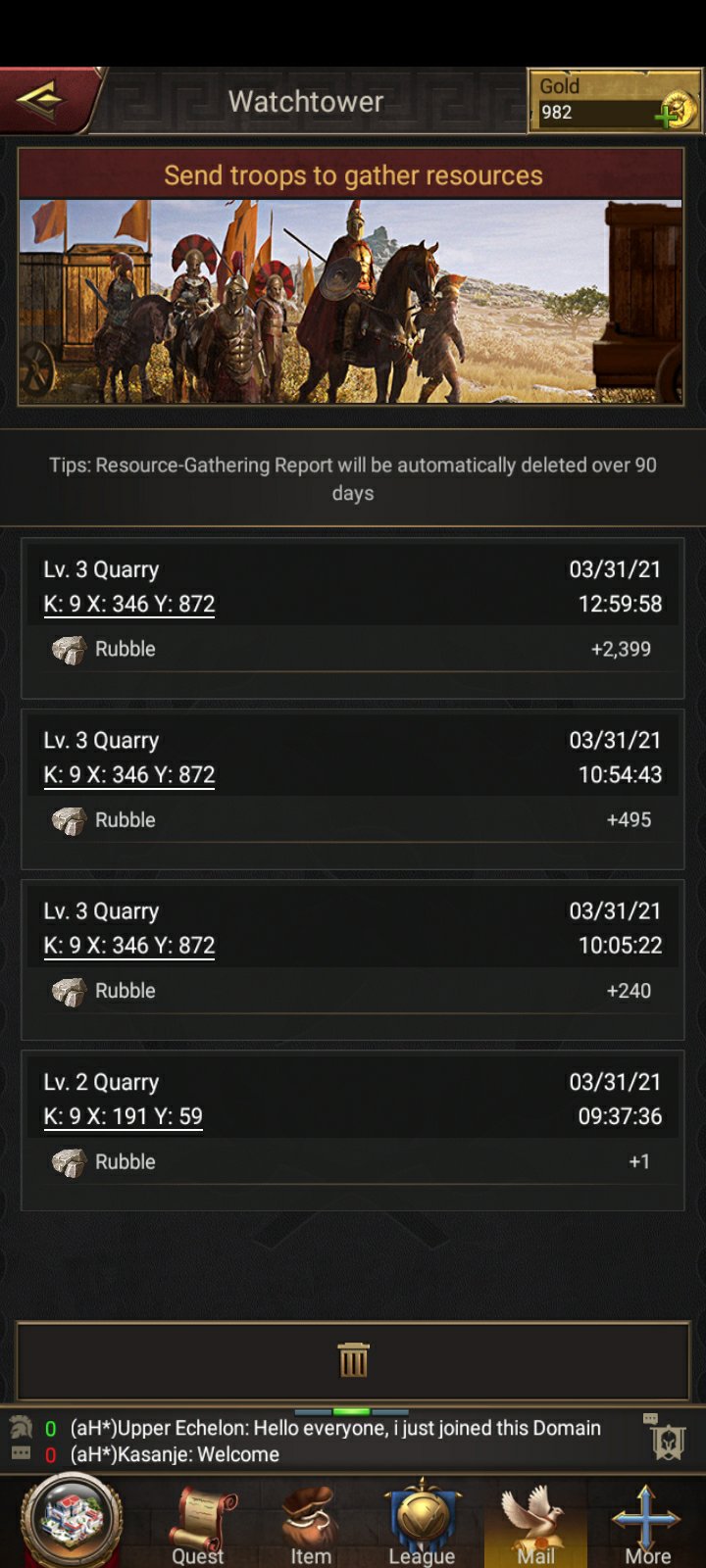 909 SB to reach level 21 Stronghold, I’ll give it a shot. I’ve done many like this before and mostly the resources needed dry up fast. Other times it’s the speedup items you run out of as buildings take 1-2 weeks to finish.
