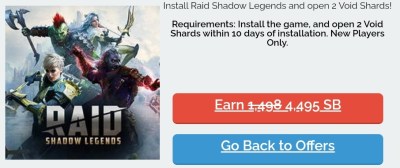 The offer is “Acquire and use 2 Void shards in 10 days.” This game shows up on all of the offer walls with varying rewards.