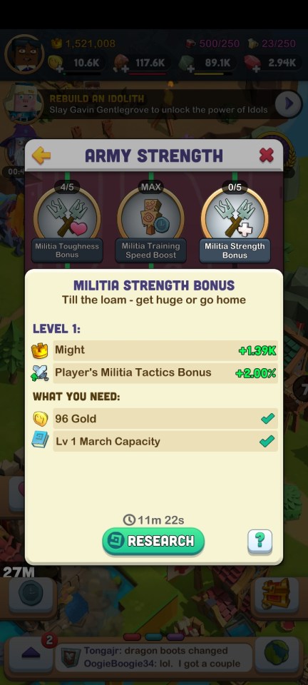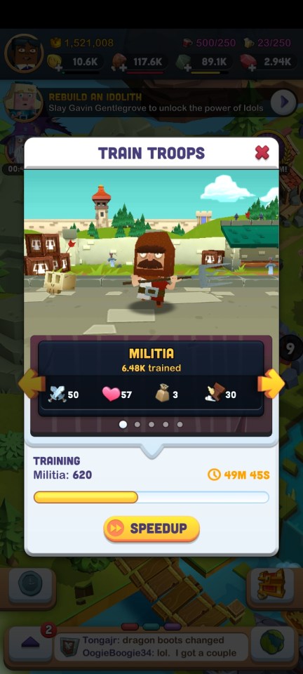 The game includes 3 Resource types: Gold, Food, and Ore. Gems are a Premium currency for Shop transactions and speeding through timers.