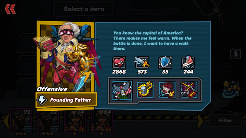 I was trying to get my Water and Fire-type heroes up to Orange. At some point, I noticed I had enough points in the Arena challenges to buy 2 copies of Founding Fathers. I had gotten one copy from a Red summon scroll and the other Heroes I needed were in my Inventory.