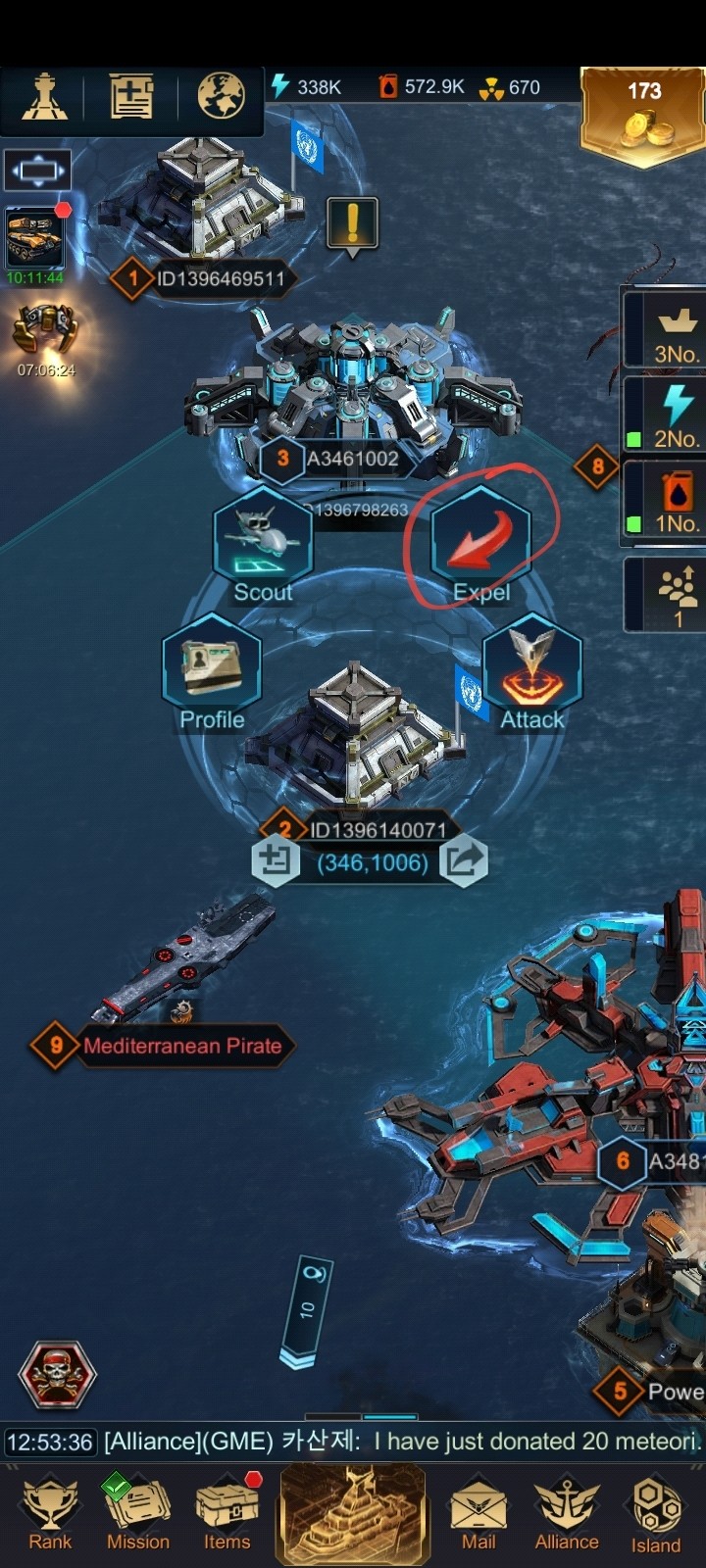 You can join an Alliance for the Help timers to speed things up or you can make your own Alliance and go solo. Either way, you will have access to Alliance Missions and regular Event bonuses. There is a function in the game to Expel players who are physically located within the Domain of your Alliance (img6) which is useful as this allows more resources to spawn near your base.