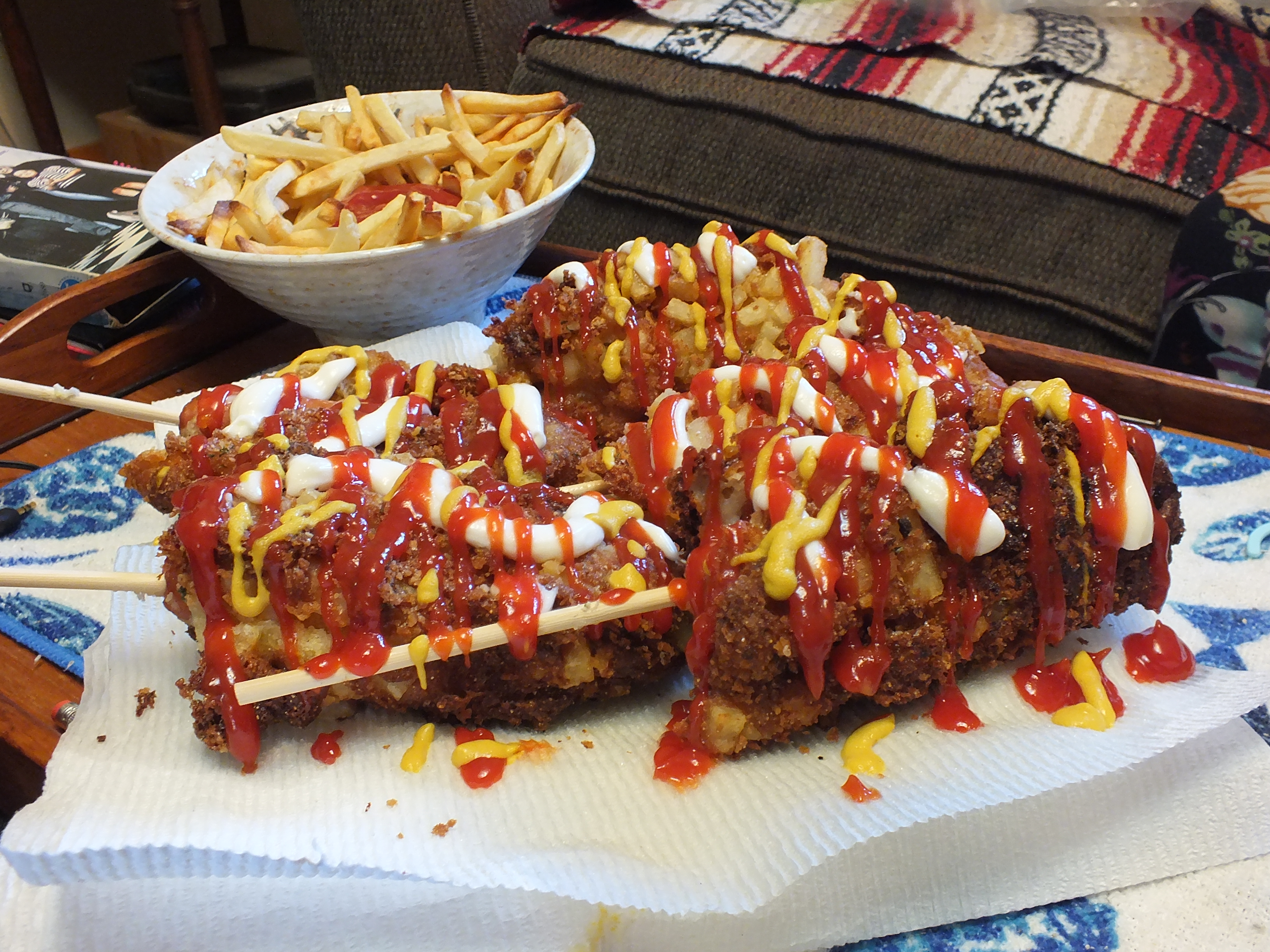 Images: Hot Dogs, Ground-Beef Nachos, Pork-Fried Rice, Japchae, Korean-Style Deep Fried Corn Dogs.