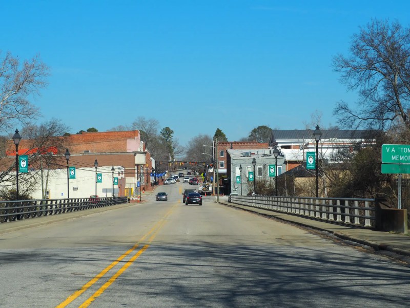 There are two bridges in town that cross over the Tar River, which winds east and south, on its way to Pamlico Sound and the Atlantic Ocean. A small park sits below the Main Street bridge, near a bend in the river.