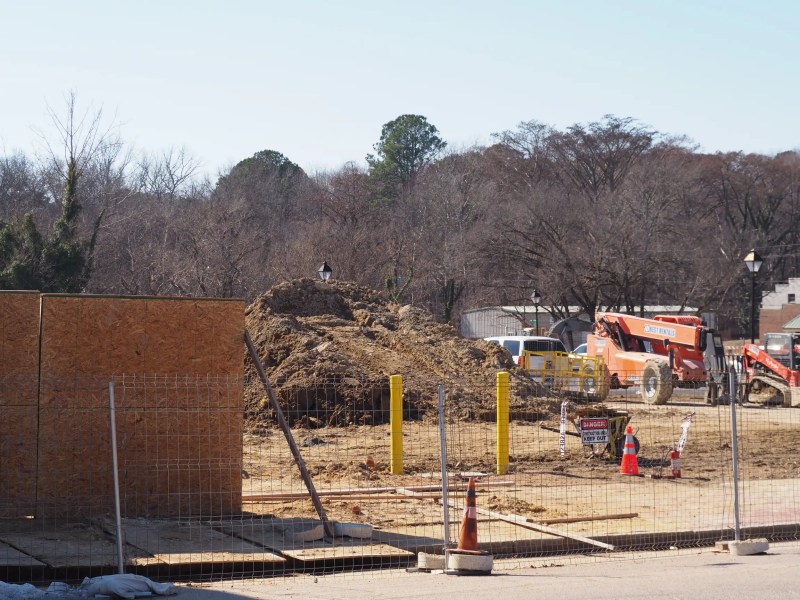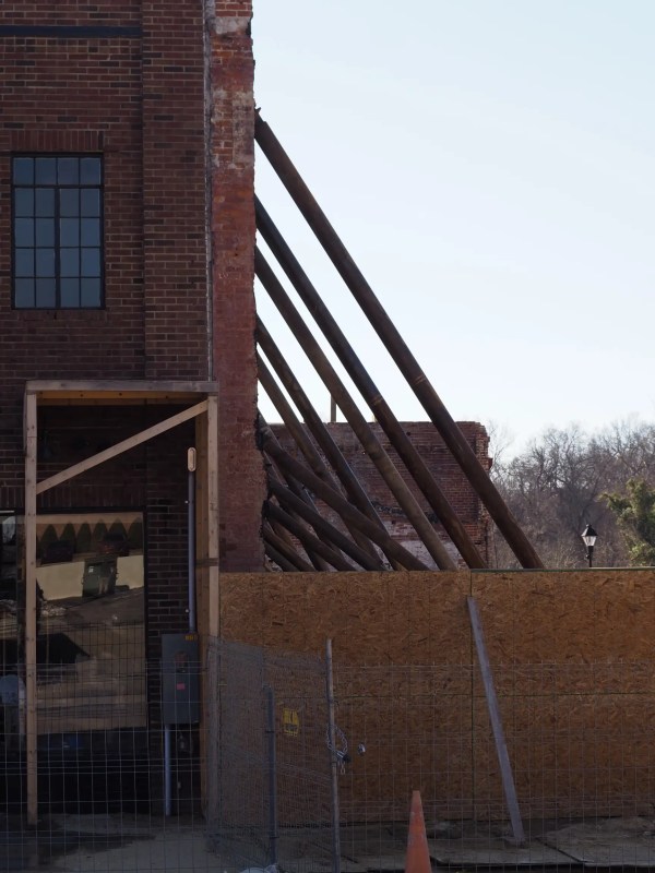 Elsewhere in town there is further construction ongoing. Braces have gone up supporting the wall of the old theater building.