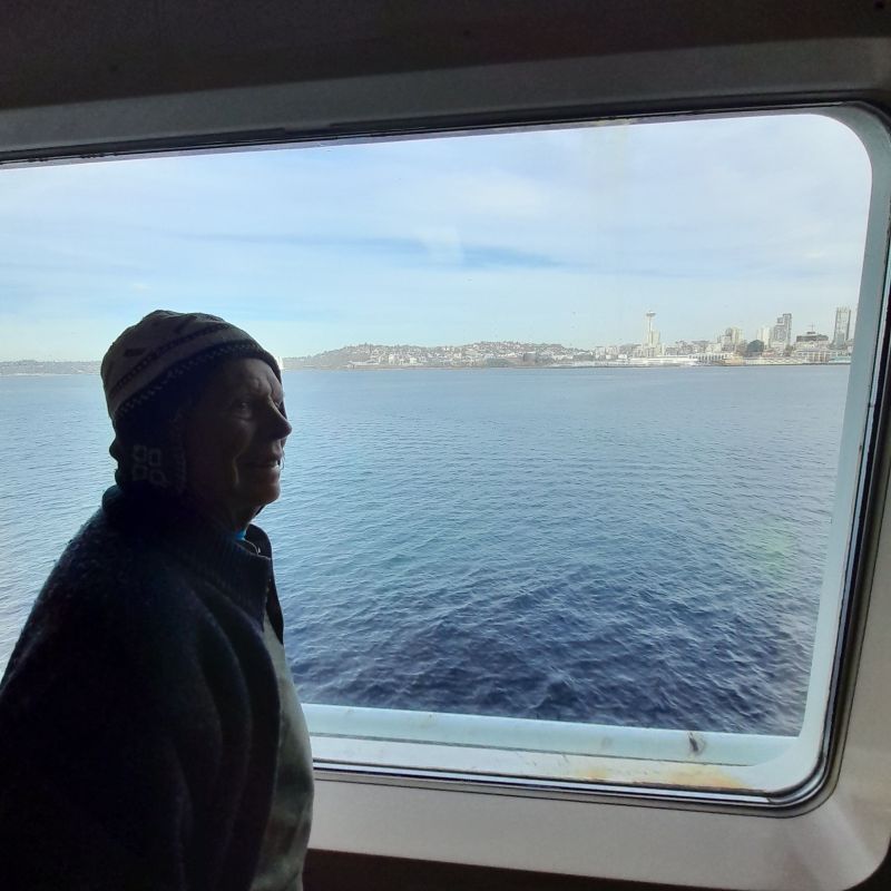 After my father picked me up from the airport, we drove in his little electric-blue Prius to the Seattle ferry boat. We took the Bainbridge ferry “Tacoma” to Bainbridge Island. It was maybe a 20 minute crossing.