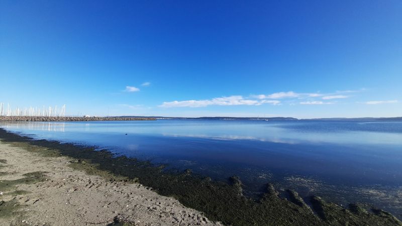 There wasn’t much wind initially. We could see the steam rising straight up, down at the far end of the bay from the paper mill. So we motored out further into the bay until we hit a spot of wind.