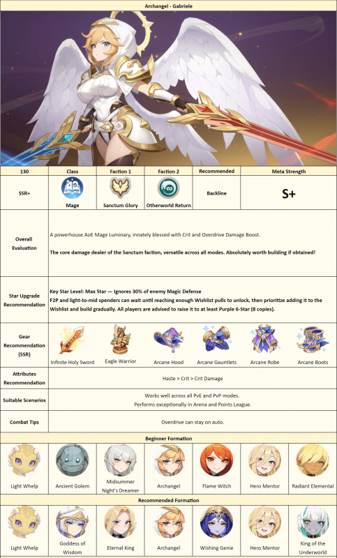 - Characters: Recruit “Luminaries” (fairies, knights, goddesses, etc.) with different factions and roles.