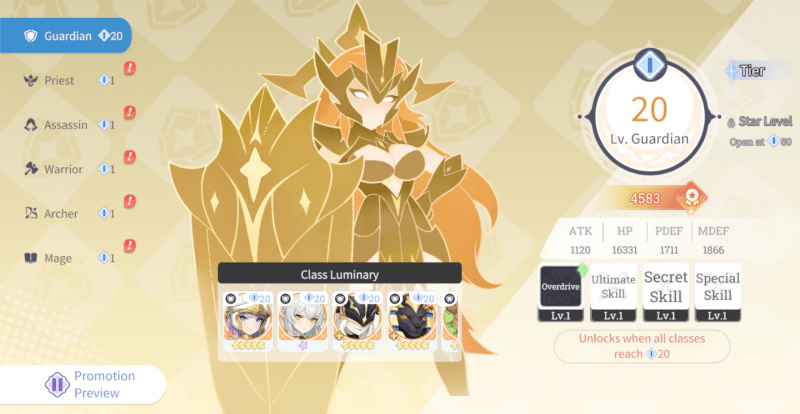 The game has six classes: Warrior, Assassin, Mage, Archer, Guardian, and Priest. Each class has multiple Luminaries to develop. To ease the grind, there’s a Class Resonance system that significantly reduces the cost of developing Luminaries, making it easier to tackle all kinds of stages. Below is a quick overview of how Class Resonance works.