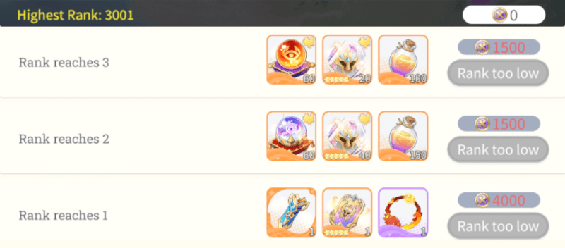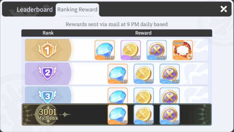 After the Arena tutorial, players are automatically placed around rank 3,000. Because the player base isn’t saturated on Day 1 and most players aren’t focused on pushing progress, many top spots may be held by NPC accounts. These NPC lineups are lightly invested and easy for real players to beat. You typically won’t see human opponents cluster until around rank 500. For that reason, try to push into the Top 400 if possible. This secures nice daily rewards (including 140 Diamonds) and gives you a better starting position for the tougher competition that follows as the server fills up. If your Luminary Formation is stronger, keep climbing as high as you can. Diamonds are granted immediately when you reach a new personal-best rank, so if you’re out of entries but can still climb, buying extra attempts is worth it.