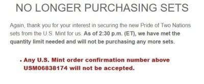 I also purchased a set of 5 ‘Pride of Two Nations’ silver coin sets for an APMEX deal that they did not honor. I tried listing them on eBay, but APMEX was selling them for next to nothing there and killed the resale market.