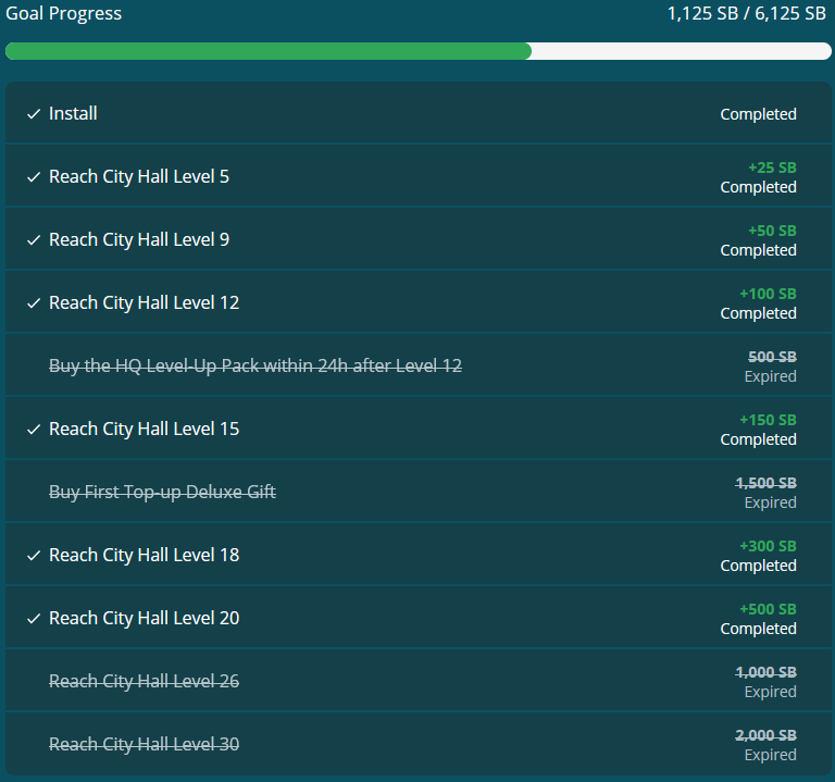Some of the goals require a purchase, which may be a good choice given the limited 30 day offer terms.