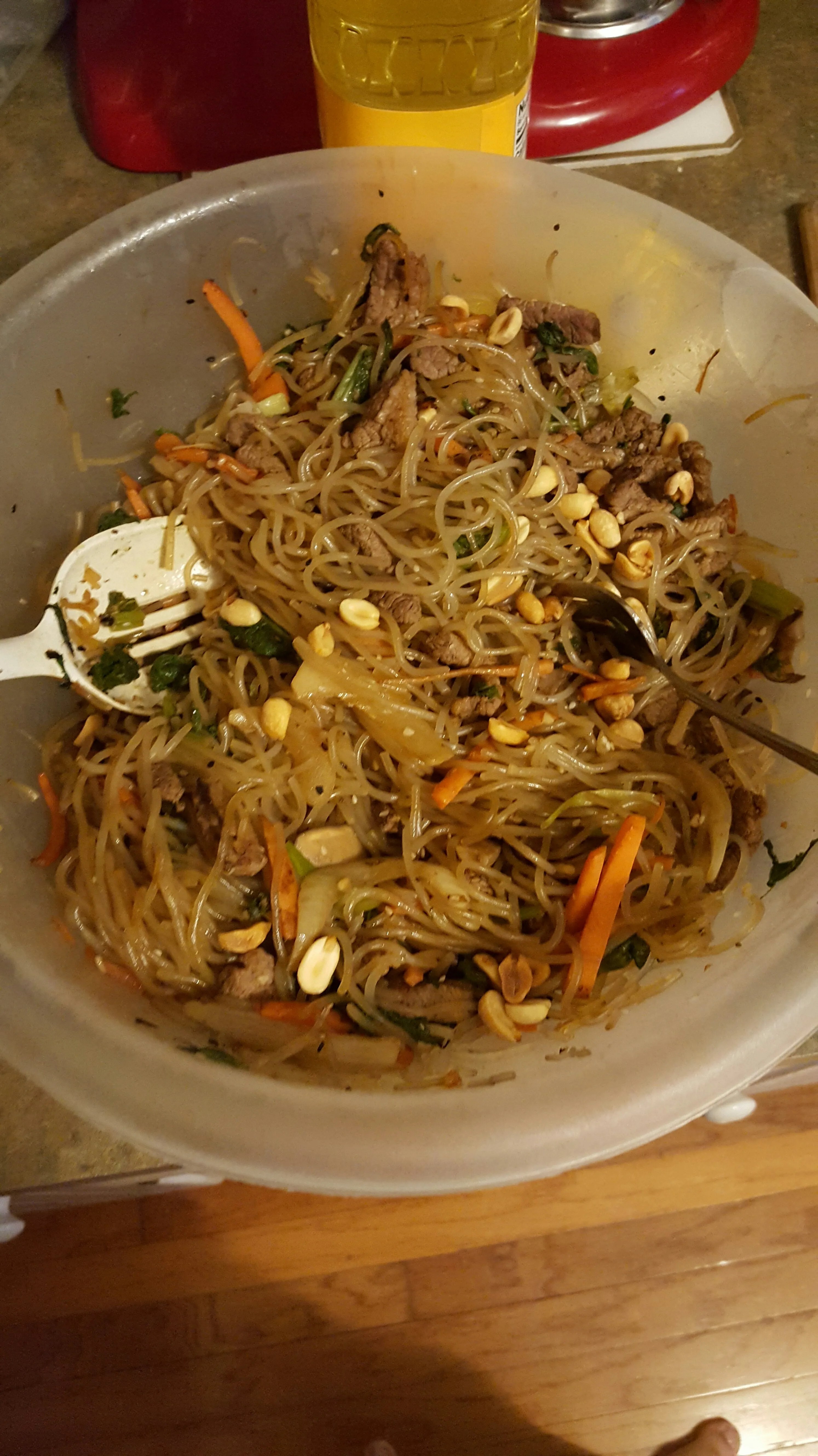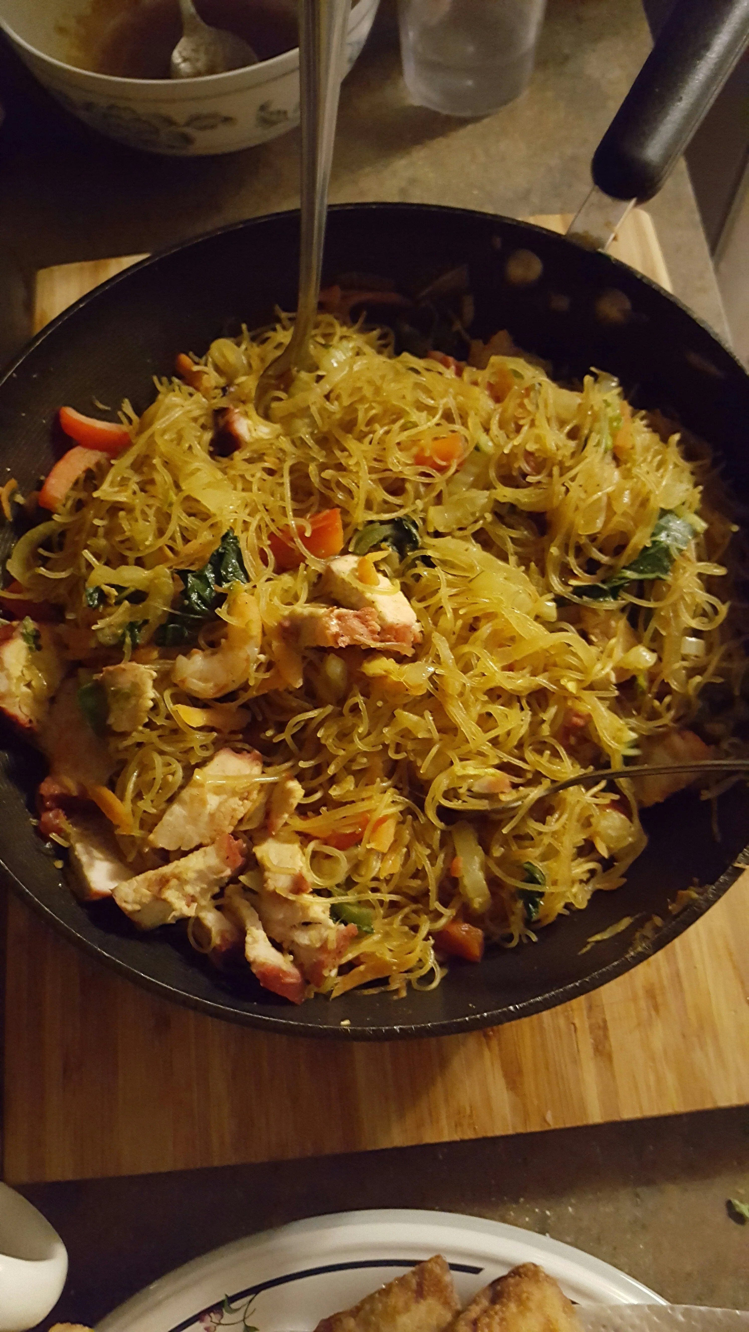 On Sunday, the day before my flight, for breakfast we had Egg Fritatta made in part with leftovers from Thursday’s stir fry, including a few shrimp.