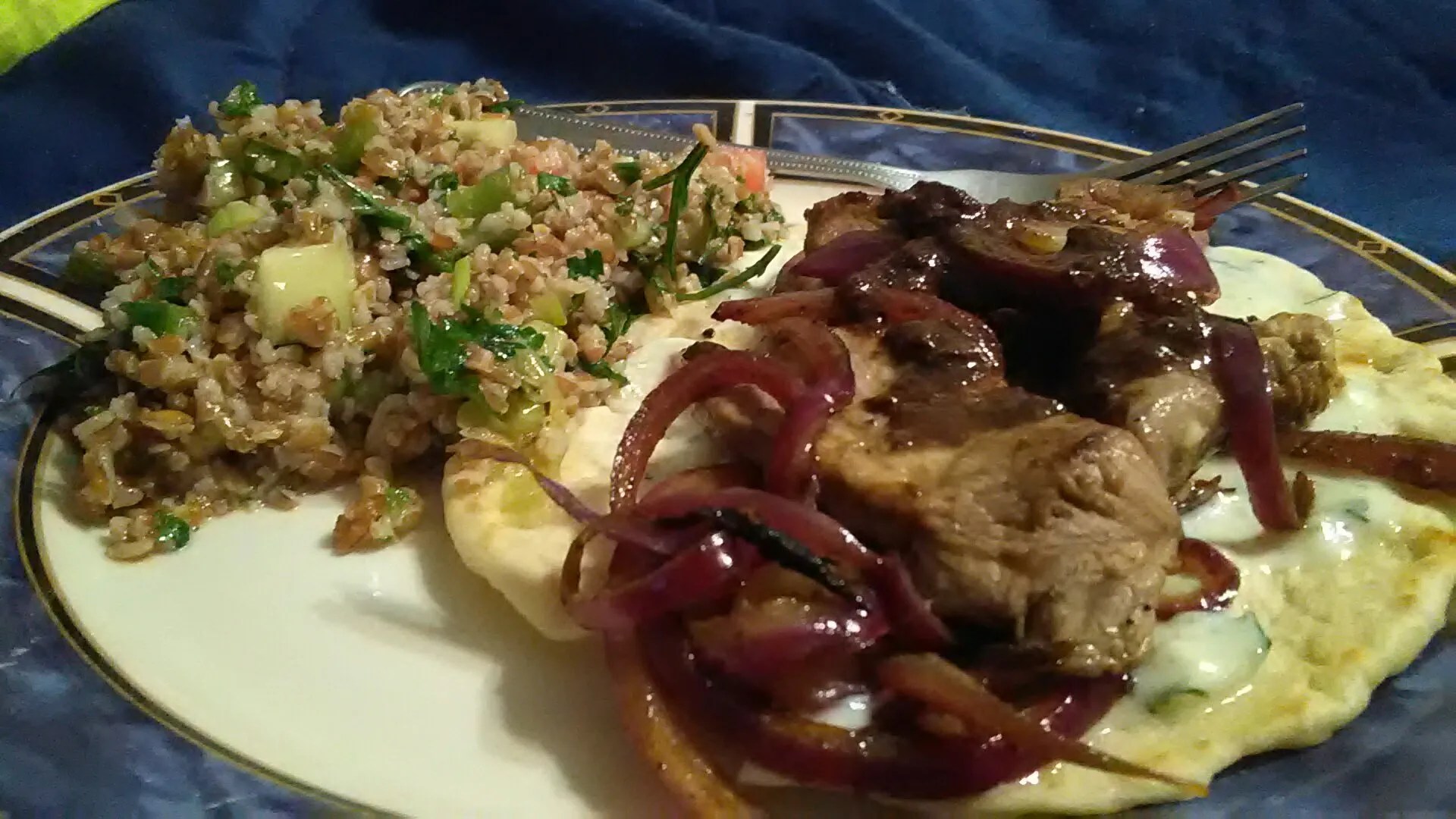 Dinner consisted of Gyros and tabouli, and my mother made some nice naan to go with it.