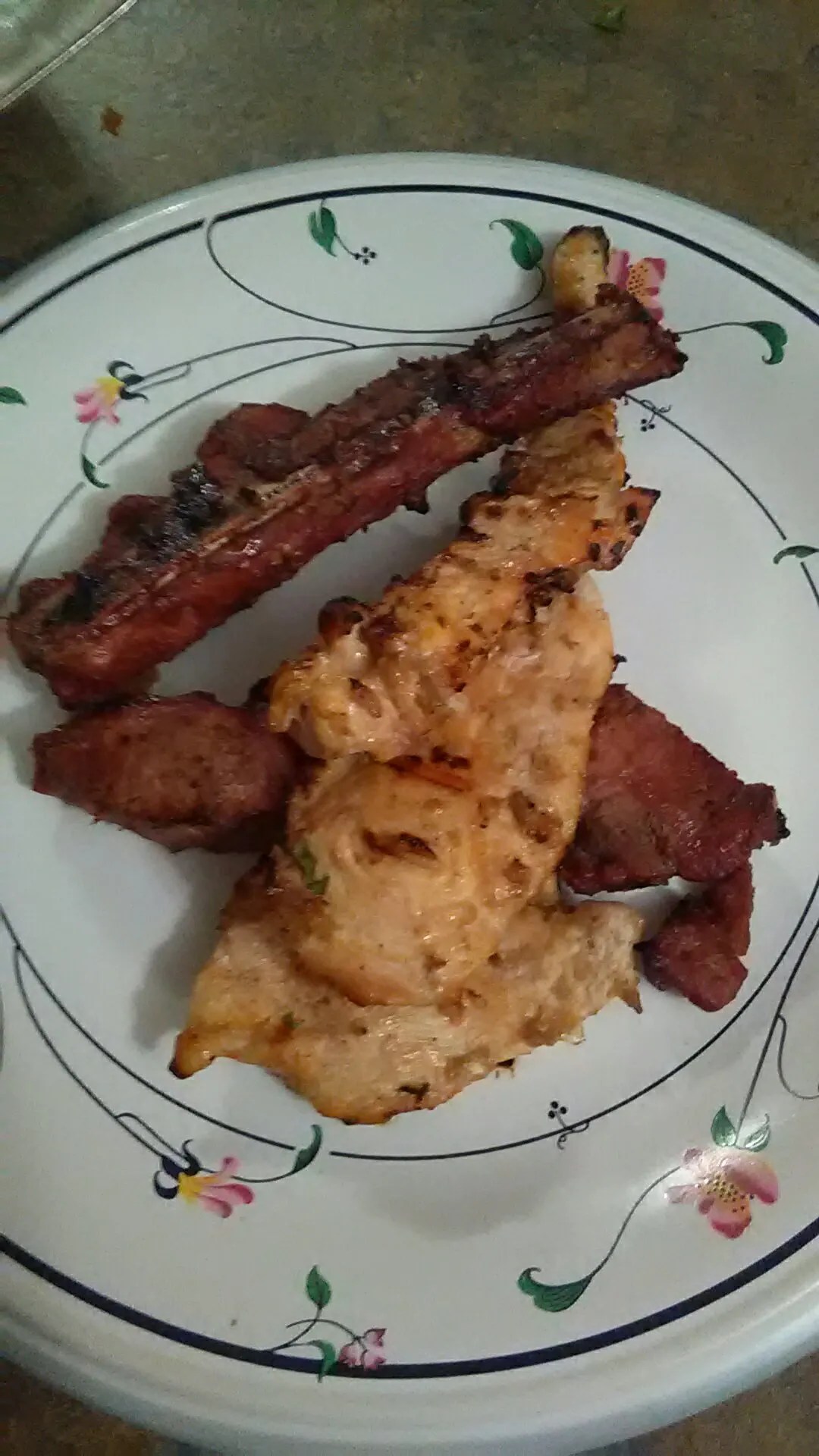 We have chicken (닭) and pork (돼지 고기), lettuce (상추) for wraps (쌈).