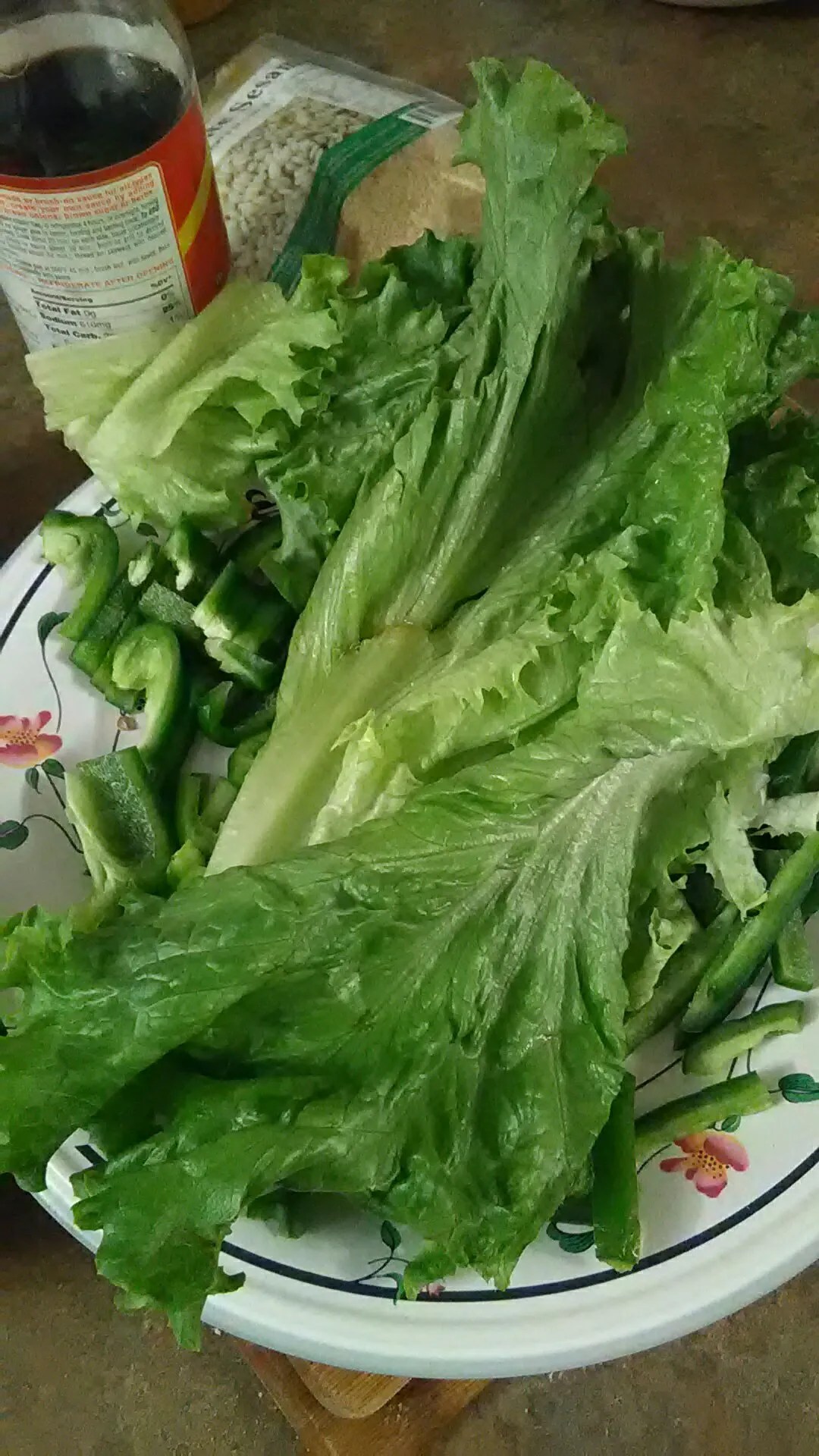 Some green peppers (피망), dipping sauces, marinade, and my mother’s kimchi (김치).