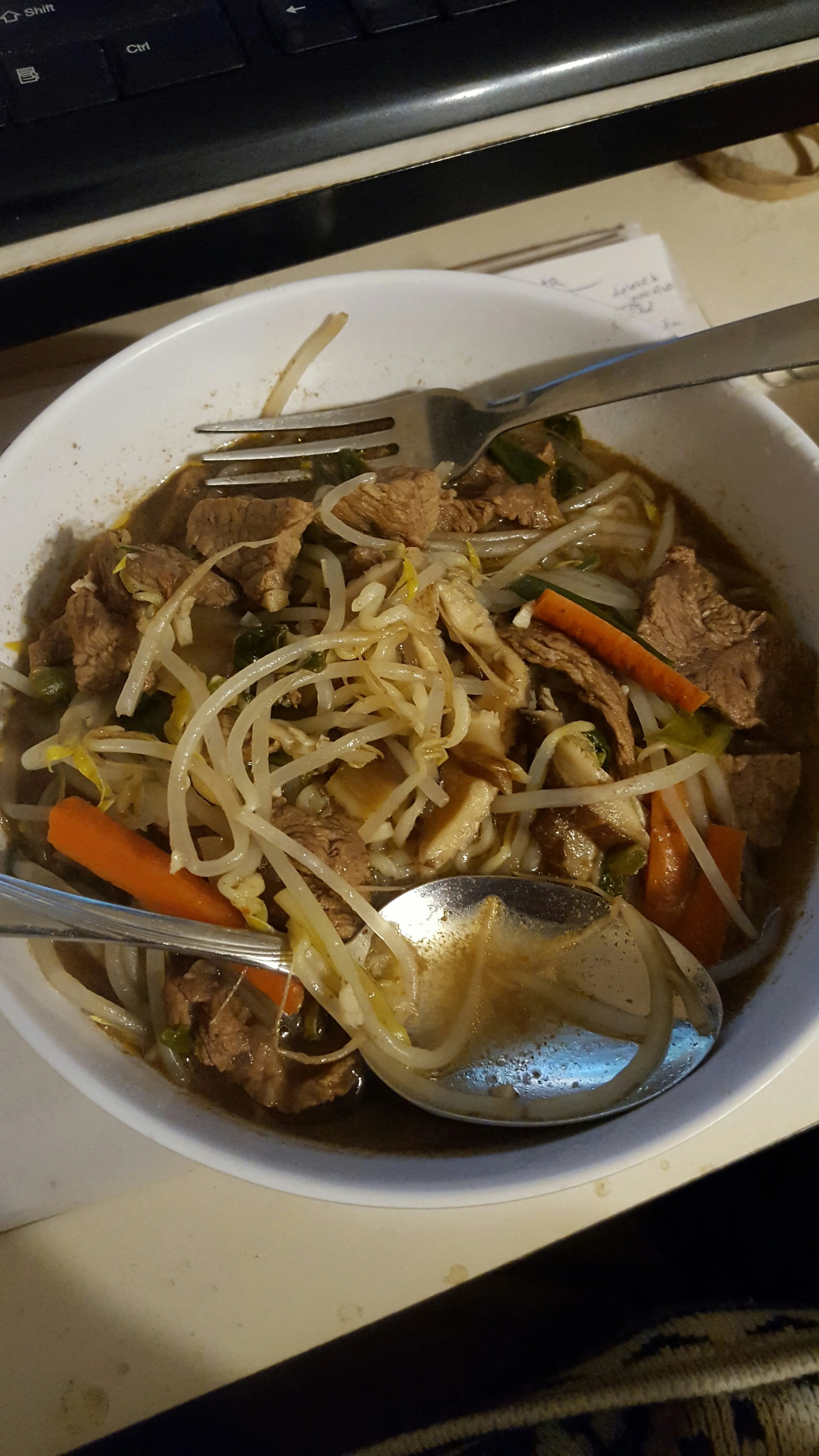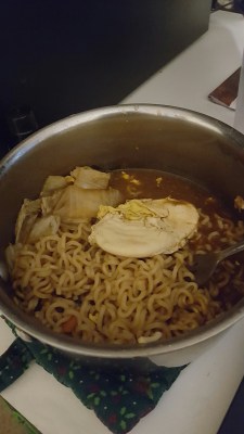 Korean Spicy Beef Ramyun with kimchi.