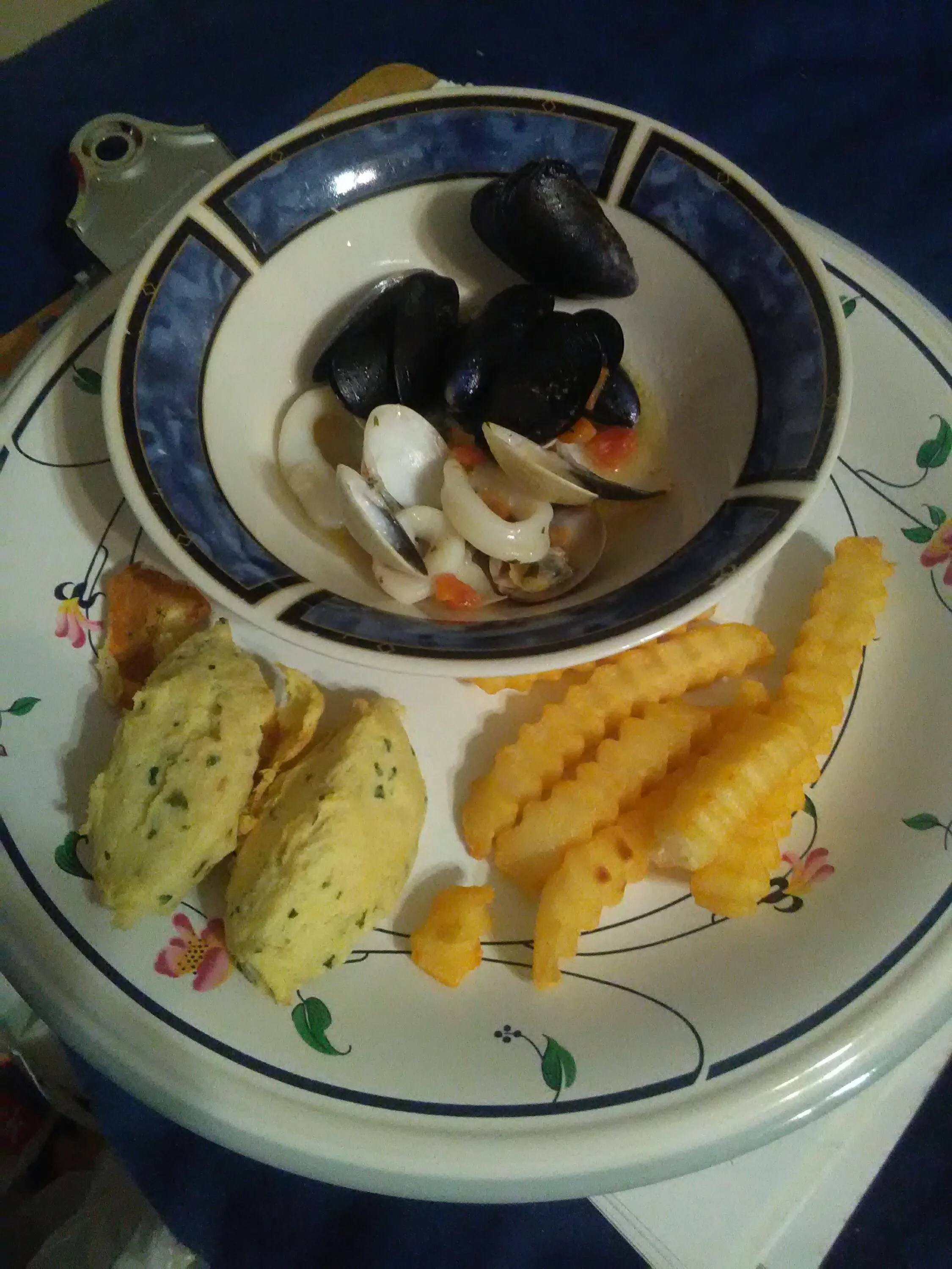 Dinner that evening was a two part repast of Potato leak soup followed with a cut of poached Black Cod with a side of fried potatoes. A garden salad rounded out the meal and added some needed fiber and vitamins.