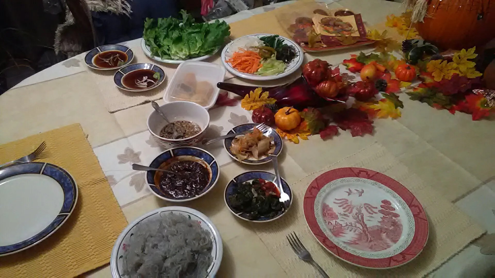 My mother made Mandu (만두) and Moon cakes with red bean and coconut fillings. We will also have Patbingsu (팥빙수) later.